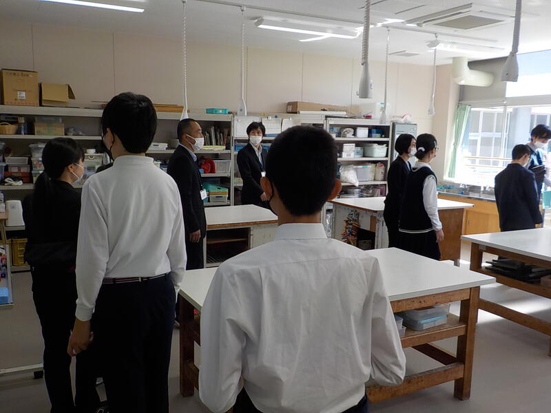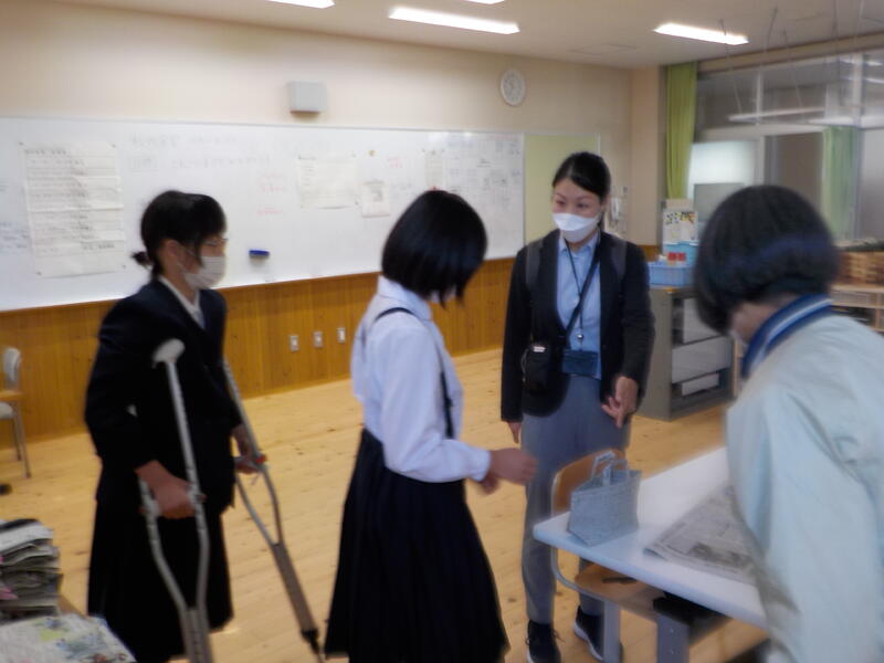 進路学習で中学部1・2年生は、天草支援学校高等部校舎へ見学に行きました。今年の4月から高等部校舎が移転をしたため、以前のようには高等部の様子を知ることが難しくなりました。そこで今回、高等部の様子を実際に見学をしたり、疑問に思ったことを質問したりできたことで、進路について考えるよい機会となりました。
