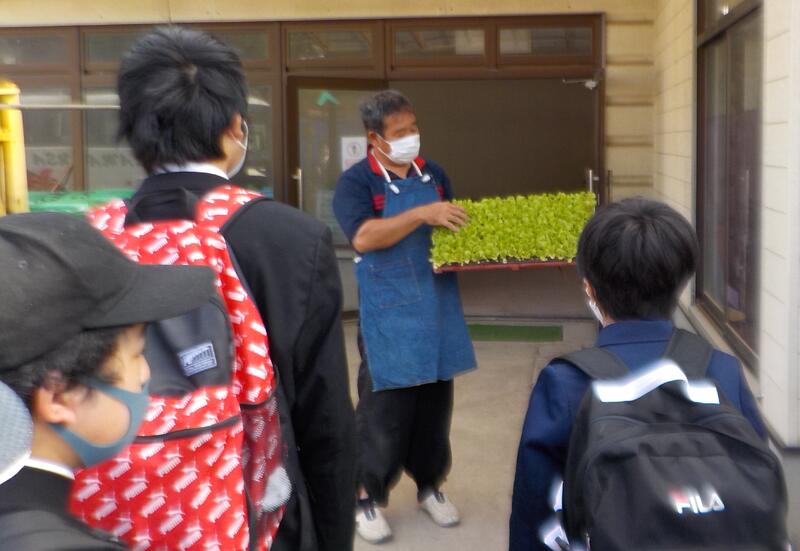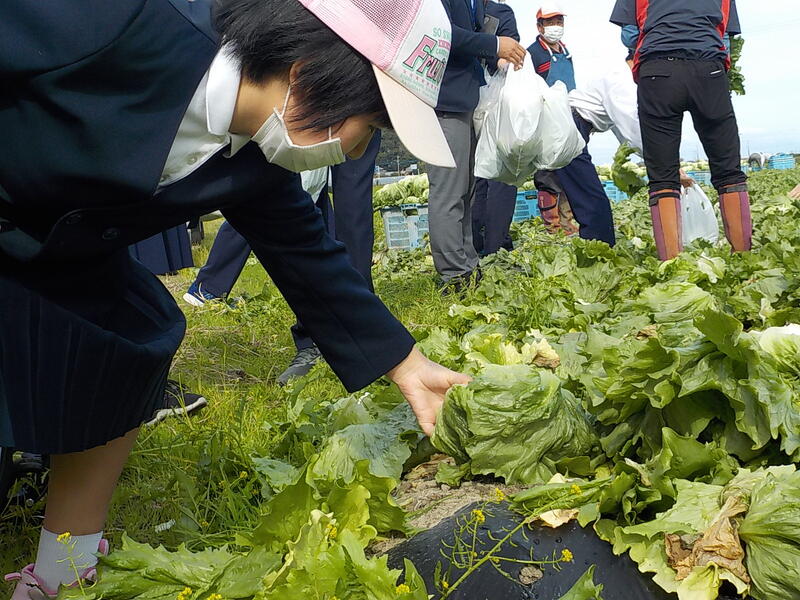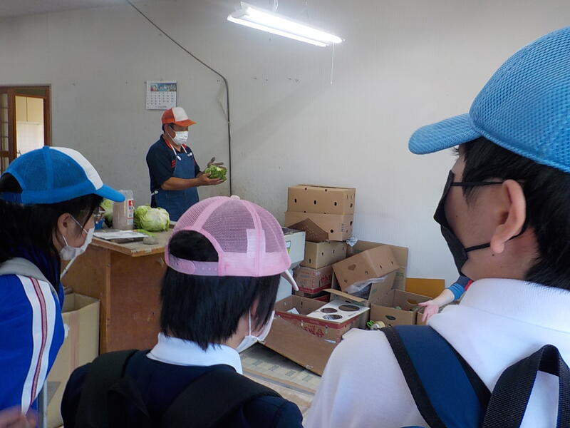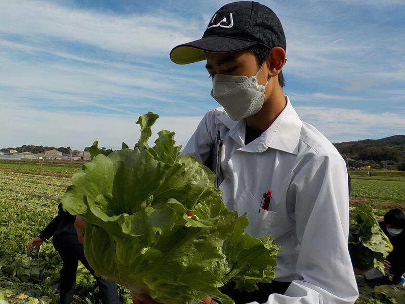 11月21日(月)に天草の産業の学習として、苓北のレタス農家へ見学に行きました。レタス農家の方に質問をし、育て方や出荷数、出荷方法等について学びました。また、レタスの収穫も体験し、両手で抱えるほどのレタスの大きさに驚きつつ、手に取ると自然と笑顔になっていました。