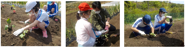 9月からは学級園で秋作・冬作野菜のジャガイモやブロッコリー、大根を育てています。みんなで協力して、畝を作り、種芋や苗を植えました。マルチを張る理由や道具の使い方、畝立て及び種芋・苗の植え方を学び、実践しました。冬には、おいしい野菜が収穫できるよう、みんなで協力しながら野菜を育てていきます。