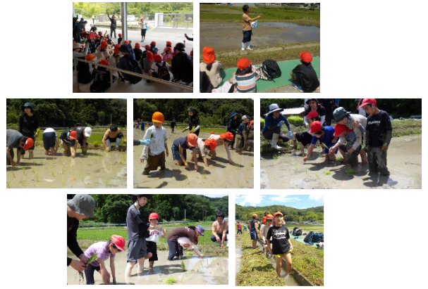 6月17日(火)に、小学部で田植え体験を行いました。広い田んぼにわくわくドキドキの様子の子供たち。田んぼにそっと足を入れ、泥の不思議な感触を感じながら入っていきました。泥に慣れてくると田んぼの中を歩き回り、田植えにも挑戦することができました。