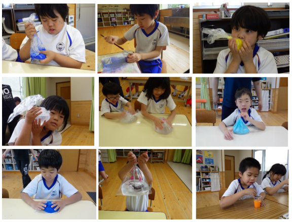 小学部1,2,3年生では、6月の上旬に、水を使った学習に取り組みました。晴天時はビニールプールや水鉄砲を使って水遊びをする予定でしたが、雨が続いたため、室内で水を使った学習をしました。水のお手玉作りやスライム作りでは、水やスライムの感触を楽しみながら作りました。色水遊びでは、容器に絵の具と水を入れて容器をフリフリ!色が変わる様子に興味津々の子供たちでした。友達や教師と一緒に、水を使った遊びを楽しみました。