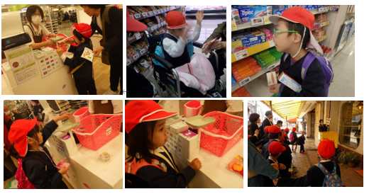 当日は、学習で取り組んできたことを発揮しながら買い物をすることができました。購入したい商品を探したり、好きな物を選び買ったりしました。支払いでは「お金を渡し、おつりとレシートを受け取り、財布に入れる」等の一連の流れを教師と一緒に確認しながらしっかりと行うことができました。約束等も守り、楽しい校外学習となりました。