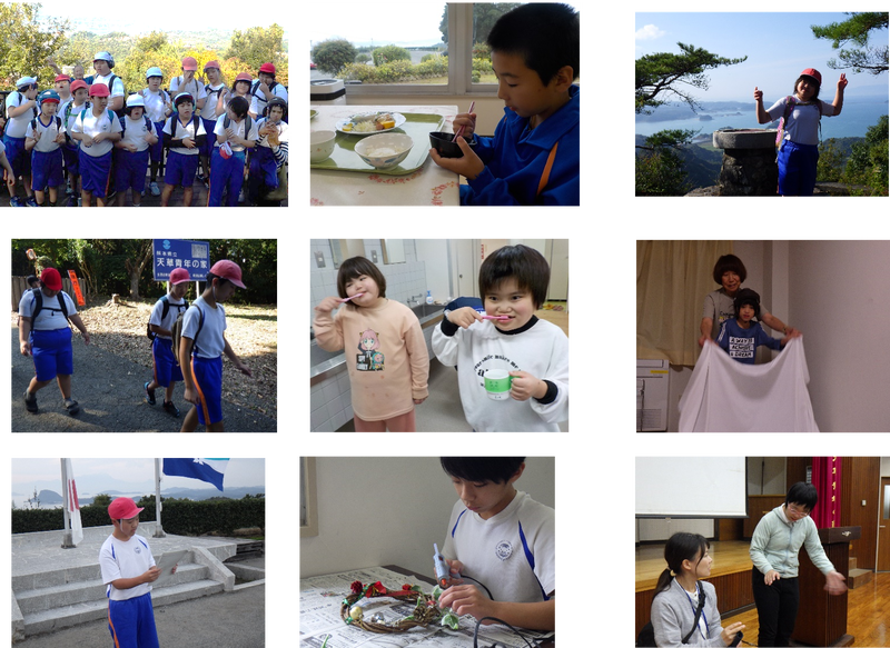 11月14日(木)~15日(金)、4・5・6年生で「天草青年の家 宿泊学習」を行いました。事前学習では、日程確認、シーツの畳み方、係・目標決め、歌の練習等を学習しました。1日目には、大自然の中で、往復2.4kmの千巌山ハイキングを楽しみました。2日目には、クリスマスリースに飾りつけをして、自分だけのクリスマスリースを作りました。2日間を通して、集団行動をしたり、施設のルールやマナーを守ったりする等、事前学習で学んだことを生かそうとする子供たちの姿が見られました。今回の宿泊学習を通して様々な学習をしてきた子供たちでした。2日間の経験で、できたこと、難しかったことを保護者様や学園の先生方と共通理解しながら、今後の生活に生かしていきたいと思います。