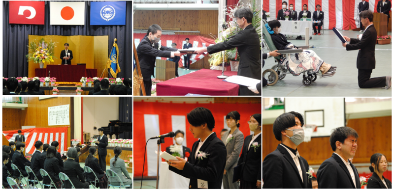 3月2日に高等部の卒業証書授与式を行いました。当日は、別れに涙する場面もある中、全員が立派に卒業証書を受け取ることができました。