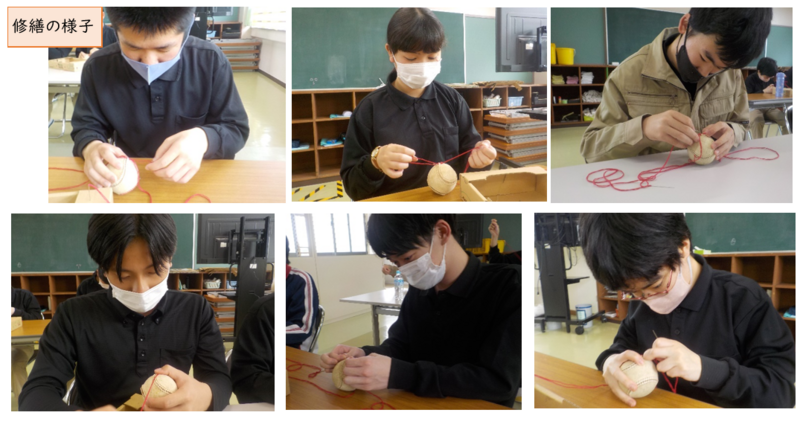 2月16日、インクルージョンボールを納品するために天草高校野球部を訪れました。天草高校野球部の勝利を願い、高等部の生徒たち全員で一針一針に心を込めてボールを修繕しました。野球部の皆さんは、大変喜んでくれました。私たちは同じ天草の高校生として、これからもお互いに声援を送り合っていきたいと思います。