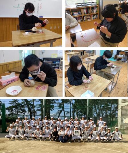天草支援学校は、天草内の高校球児を応援するため、破損したボールの修繕活動を行っています。今回も、みんなで協力して、一針一針、思いを込めながら縫いました。