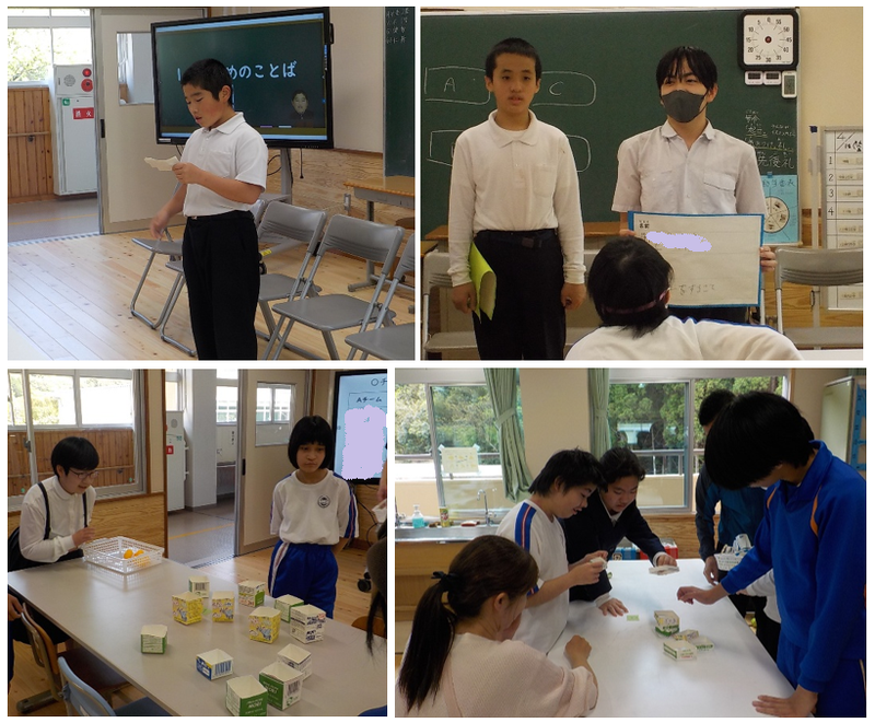 4月18日(金)、2・3年生が計画・進行をした学部交流会を実施しました。事前に、伝える内容を考えて練習した成果もあり、同じ学部の友達や先生方に向けて堂々と自己紹介をすることができました。また、グループ対抗のレクリエーションでは、ピンポン玉入れと牛乳パックつみゲームに協力して取り組む姿が見られました。勝ち負けではなく、“学部の友達と仲良くなる”という学部交流会の目的を意識して、楽しみながら親睦を深めることができました。これからもみんなと一緒に活動することが増えていきます。学部交流会で仲良くなった仲間と、積極的に関わりながら、充実した学習活動につなげて行きたいです。