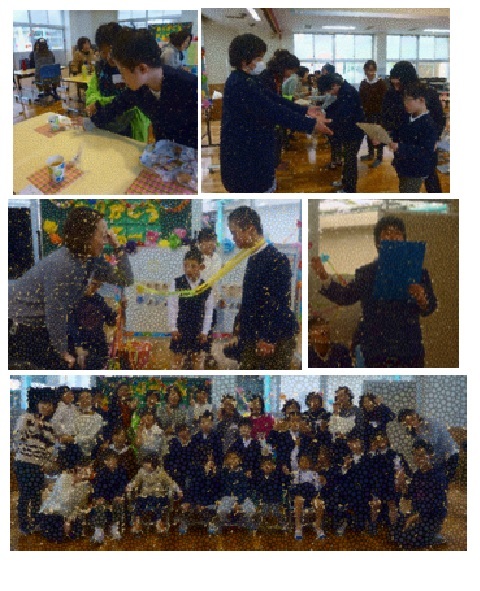 2月9日(土)は生活単元学習『はっぴょうかいをしよう』の本番でした。たくさんのお客さんを前に緊張した様子でしたが、みんな練習の成果をしっかりと発揮することができました。午前中はクラスごとに様々なテーマに沿って学習したことを発表しました。1,2年生は『わくわく☆はぴねす♡めざせおでかけめいじん』。お母さんから頼まれたおつかいを達成するため、校外学習で学んだおでかけの決まりを守りながらみんなでおでかけをします。バスでの移動中に現れたクイズおじさんのクイズを、学校で学んだことを活かしながら解いたり、怪しいおじさんからの誘いを断ったりと盛りだくさんの内容でした。3年生は『しろくまちゃんとわたしたちのホットケーキ』。3年生3人で力を合わせてホットケーキを作ります。正しい個数のフルーツを取ってきたり、三角形の3点の軌道で生地をかき混ぜたりし、最後にはとてもおいしそうなホットケーキが完成しました。4,5年生は『あま新喜劇~げんきいっぱいひまわりたい~』。新喜劇のノリで笑いを誘ったり、悪者たちとの対決では真面目に国語と算数の問題を解いたりと、バラエティ感溢れる発表でした。6年生は『あましくえすと』。1年生でスタートし、冒険の道中に現れたモンスターたちの出す問題を解きながらレベルアップ(進級)し、立派な6年生を目指します。6年生4人の協力する姿が見られたり、これまでの担任の先生からのサプライズメッセージがあったりと、感動の発表になりました。日頃の学習の成果を保護者の方々に披露することができた子ども達、発表会を通して更に成長しました。これからも一人一人の「できた!」を増やしていけるよう、日々の学習を大切に積み重ねていきます。発表会を見に来てくださったみなさん、ありがとうございました。