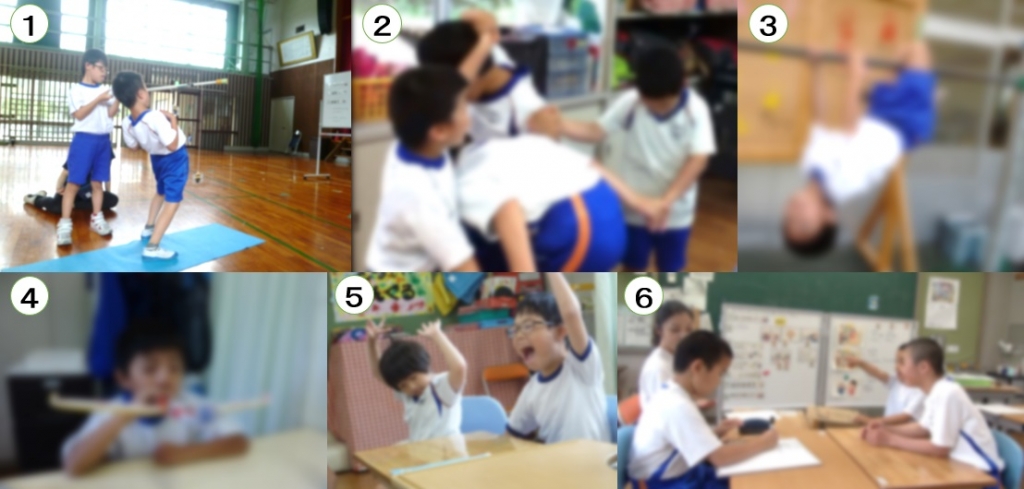①蜘蛛を避けて歩く活動を通して、自分の身体各部への意識を高めています。蜘蛛の位置を把握し、どう身体を動かせばいいかしっかり意識できているようですね。