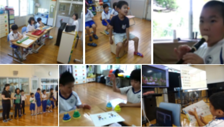 ⑤挨拶・返事の練習をしています。授業を重ねるごとに大きく上手にできるようになりました。授業外でも先生や友達同士での挨拶がよく観られるようになっています。