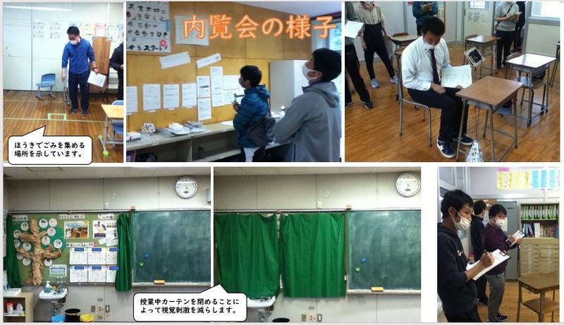 11月18日(水)に職員研修で『各教室の内覧会』を行いました。UD(ユニバーサルデザイン)の視点をもって教室の環境を整え、各教室を見て回ることによって得た気づきや学びを、よりよい教室の設営につなげることを目的としています。普段じっくりと他の教室を見る機会はないため、取組について教師間で意見交換をしたり、アイデアを吸収するために質問をし合ったりする等、多くの気づきや学びにつながりました。