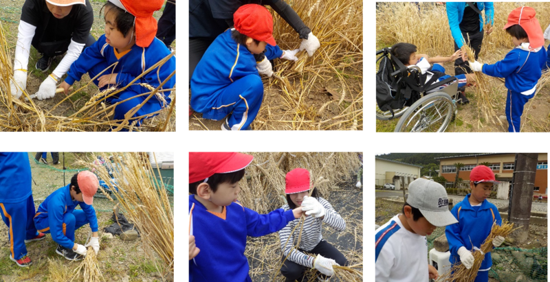 5月22日(水)に、中学部と一緒に学校前の畑に植えていた小麦を収穫しました。中学部の先輩たちにリードされながら、子供たちは鎌で小麦を刈ったり、刈った小麦をまとめ、干したりと役割分担をして一生懸命作業に取り組むことができました。今後子供たちの活動として、石臼で小麦粉を作り、調理活動を行っていきたいと思います。