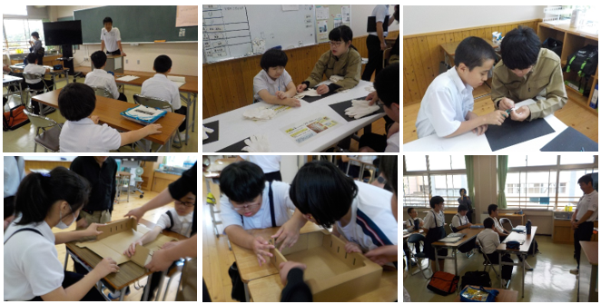 5月30日(木)中学部1,2年生の生徒が、天草支援学校高等部校舎へ見学に行きました。普段見ることのない高等部の校舎を見て、「(小・中学部校舎より)広い。」「階段が高い。」等、それぞれに感じたことを口にしていました。また、高等部の作業学習見学では、先輩たちの「黙々と自分の作業に取り組む姿」や「進行状況を報告する姿」に、「かっこいい!」という感想をもったようです。