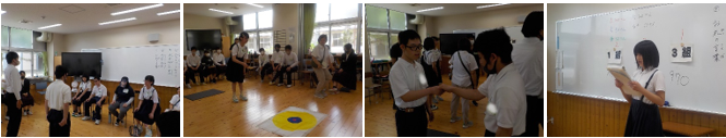 同じ日に、中学部3年生は、高等部2年生との交流及び共同学習を行いました。高等部2年生が企画してくれたプログラムで、自己紹介やゲームに取り組みました。積極的に質問したり話し合いに参加したりして、交流を深めることができました。中学部の生徒も「お礼のことば」「感想発表」「プレゼント渡し」といった自分の役割を責任もって果たし、大変盛り上がった交流となりました。