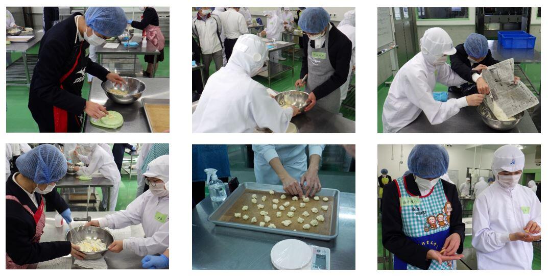 2月14日(火)に、天草拓心高校 食品科学科の1年生と高等部1年生が、クッキー作りの交流学習を行いました。校舎が同じ敷地となり、顔を合わせることがあってもあまり喋ったことはなかったので、本校生徒たちは皆、緊張した面持ちで参加していました。しかし、天草拓心高校の生徒たちが、優しく作り方の説明や手伝いをしてくれたおかげで、徐々に表情も明るくなり、最後には談笑する生徒も見られました。