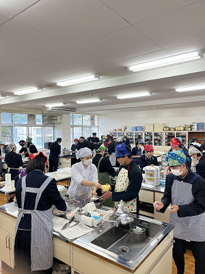 授業を見学すると、生地をこねたり具材を包んだりと、班員と協力しながら楽しそうに作業する生徒の姿が見られました。今回の実習を通して、日常生活の中での料理の大切さや、食への関心がさらに深まったと思います。