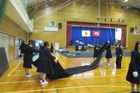 3年 共通テスト50日前集会・合格祈願の五羽鶴