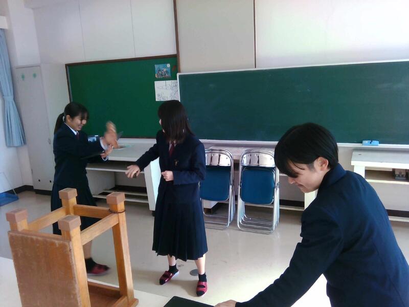 Now, they are working on two more performance assessments. In Logic and Expression, students are preparing to present their SSH research projects in English. For this assignment, they must make a slide and memorize a two-minute speech, which is quite a challenge! In English Communication, students are working in groups to create a Friendship skit based on the Kumamoto English Skit Contest guidelines. They have come up with many cute and creative ideas.
