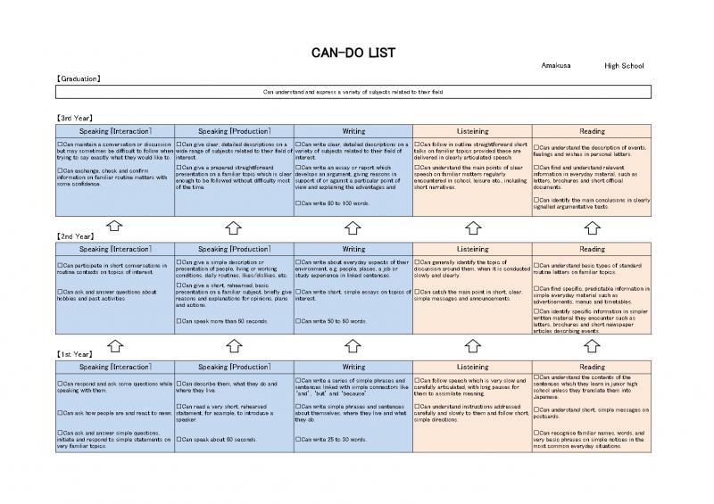 天草高校英語科が作成した「CAN-DO LIST」です。