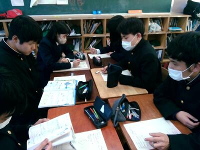 代表グループには、これから動画に字幕の訂正や音量の調整など、少々手直しをしてもらい、春休みには志願してくれたナレーターのナレーションを加えます。来年度のはじめには5クラス分合わせた「完成版」をリリース(?)できる予定です。各クラスの個性が詰まった動画、合わせると更にユニークなものになることでしょう!