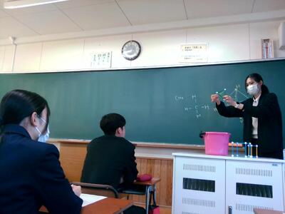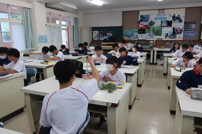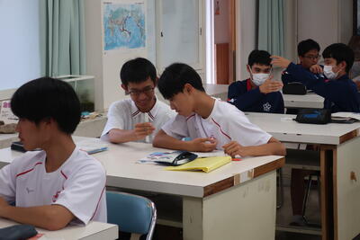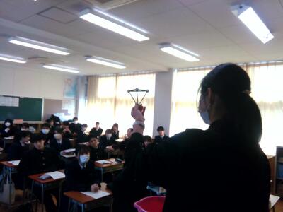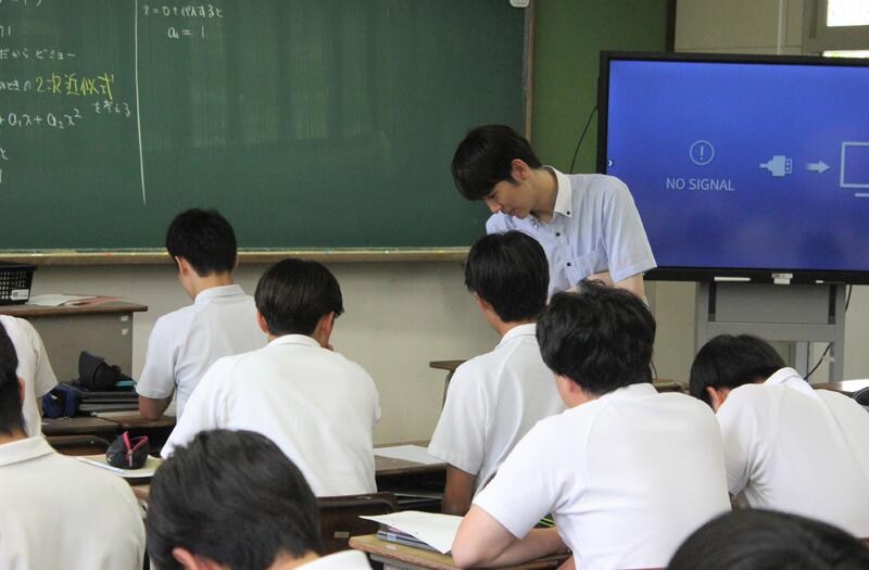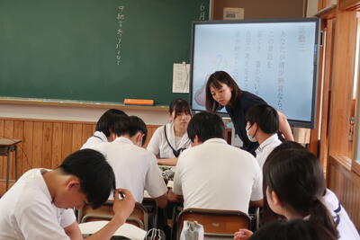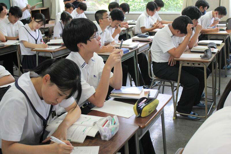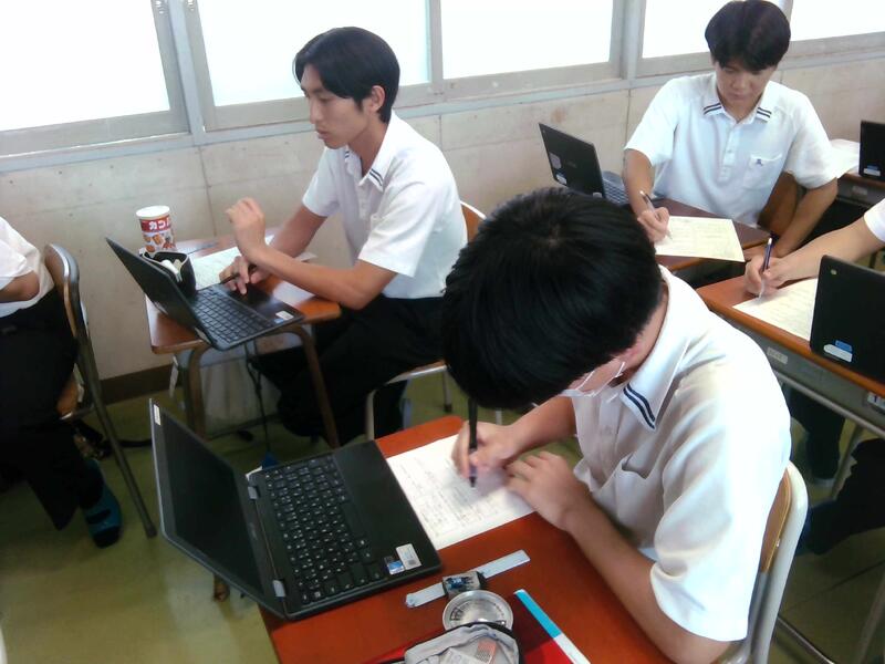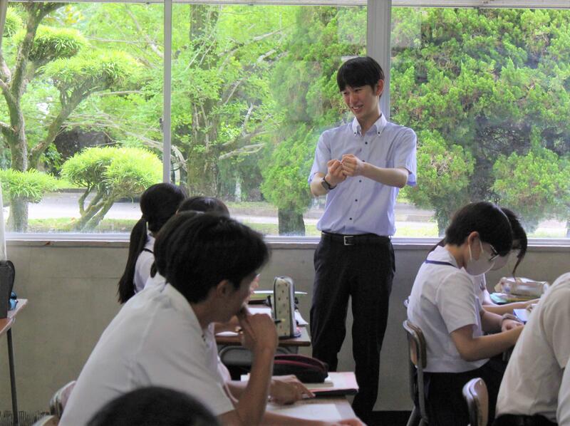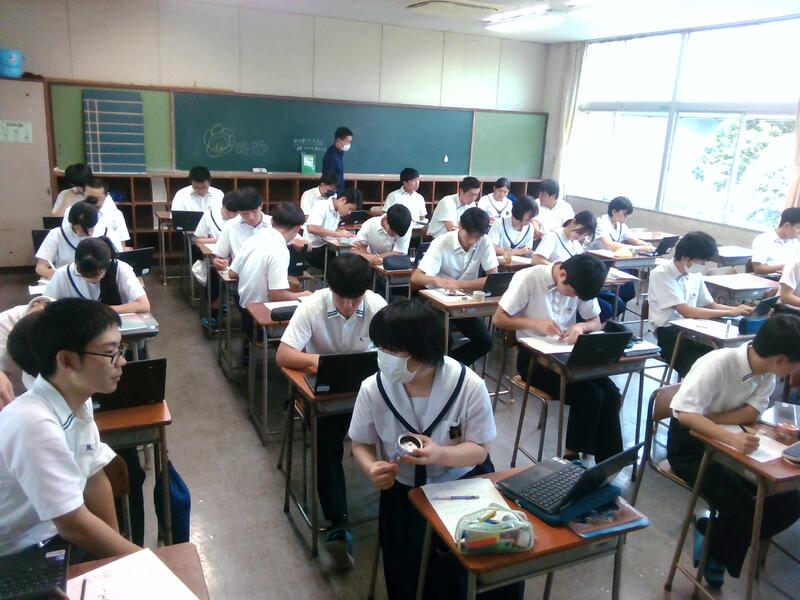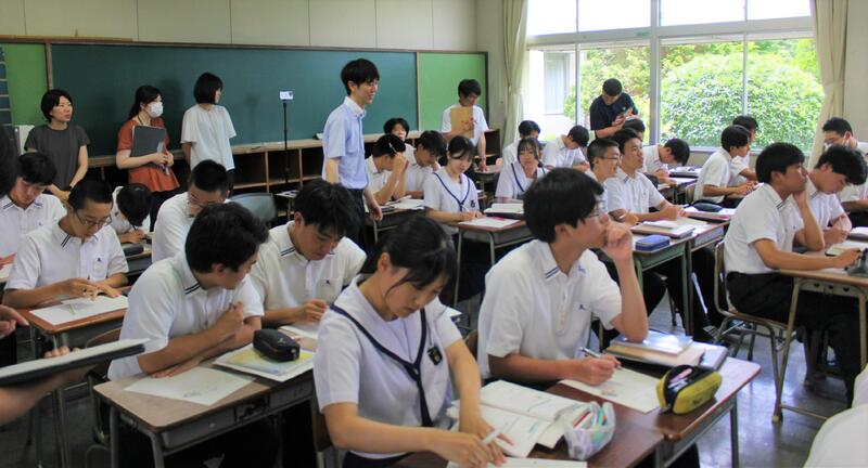 熊本第二高校のスーパーティーチャーである友田先生を始め、多くの先生方の参観のもと授業が始まり、大嶽先生も生徒たちも少し緊張していました。