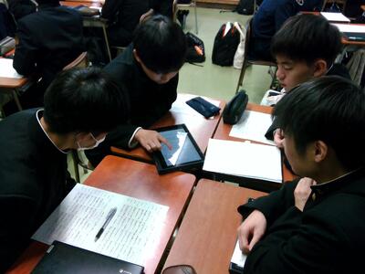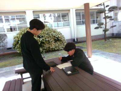 The submission deadline is this Thursday & Friday.  As you can see in the pictures above, the students are exchanging ideas on which scenes to use and how to narrate them. Some students even went outside to record - actually it was such a beautiful day and it was so relaxing in the courtyard!  All the groups seem to be enjoying themselves a lot. Once they’re done, the best video of each class will be chosen, and “the best five” will be combined to make the “School Promotional Video.” Now, which group will be chosen? We are looking forward to the completion of the video, each full of individuality!
