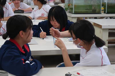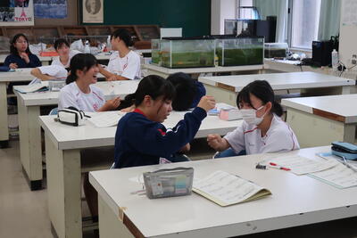 総合理科の時間に、ペアになって何やら実験をしています。