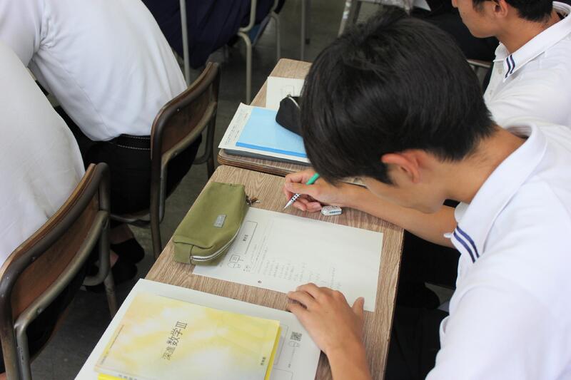 熱心に解き進める生徒が多数。互いに教え合いながら進めています。