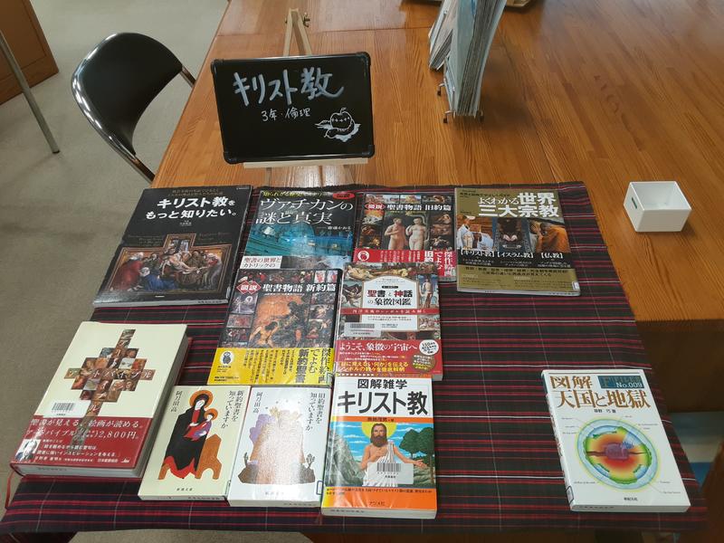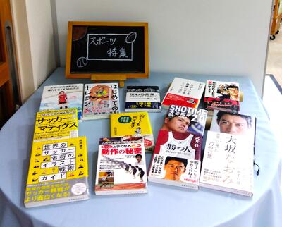 図書委員会では、毎月1回図書館入口にて、テーマを決めて展示しています。