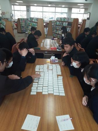 2学期最後の授業日です。古典の授業で、1年生が百人一首に挑戦しています。