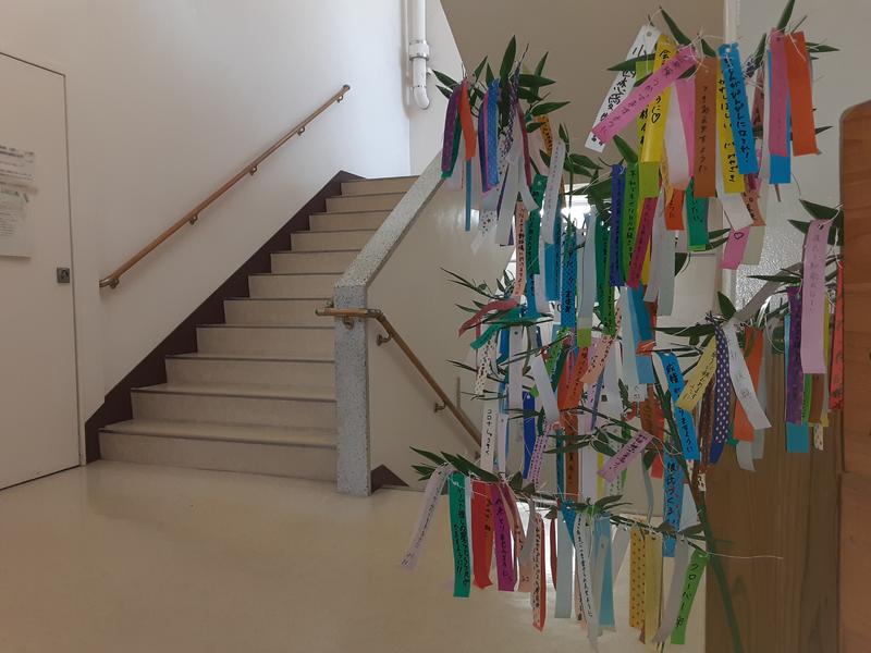 読書週間です。図書館前廊下を、今年の標語「おかえり、栞の場所で待ってるよ」でデコレーションしました。