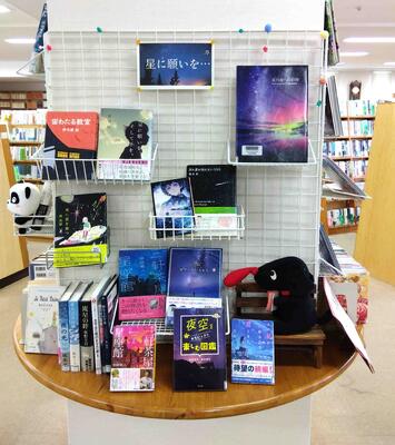 七夕にちなんで、星空の写真集や、星空の楽しみ方の本、星がテーマとなっている小説などを展示しています。