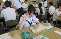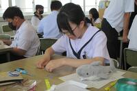 研修Ⅲでは、「図書館で使えるロープワーク」として、天草拓心高等学校マリン校舎の生徒さんを講師に、ロープワークについて学びました。また、刺繍糸を用いてしおり等につける紐作りを行いました。はじめは難しくて苦戦していた生徒たちも次第になれ、楽しそうに作成していました。