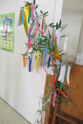 また、先日紹介していた七夕の笹飾りは、たくさんの方が短冊に願い事を書いてくれました。