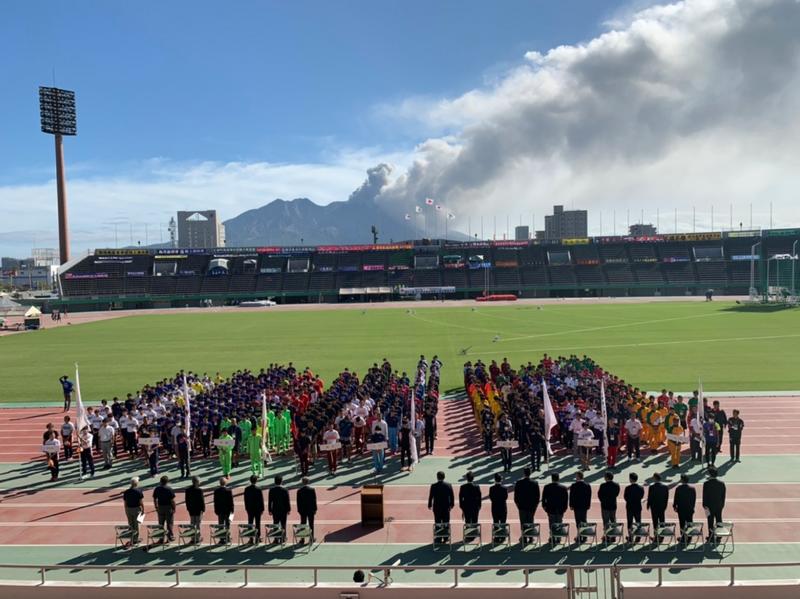 初日には、陸上競技部が学校の代表として行進をして開会式に参加しました。