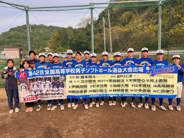 第42回全国高等学校男子ソフトボール選抜大会熊本予選会に参加して優勝しました!この結果を受けて、令和6年3月22日~25日に山口県宇部市で開催される第42回全国高等学校男子ソフトボール選抜大会に出場することになりました。天草高校としては、9年ぶり7度目の全国選抜大会です。