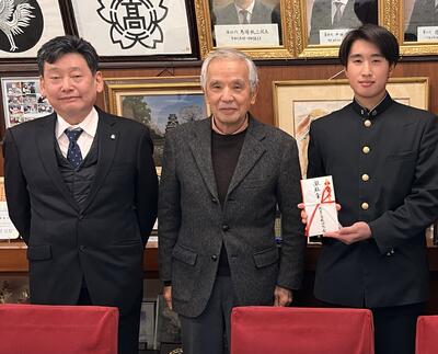 1月23日(火)本校校長室にて、同窓会の皆様から男子ソフトボール部に向けて全国大会の激励をいただきました。同窓会をはじめ、地域の皆様からも多くの支援をいただき感謝しております。