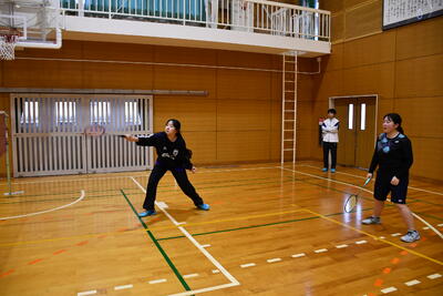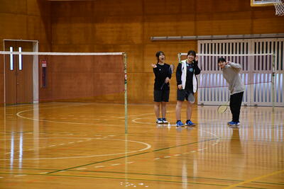 4月21日に、末綱聡子さん(再春館製薬)・吉富桂子さん(同OG)がバドミントン部の練習に参加していただきました。