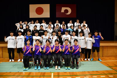 試合前には、現在、男子ダブルス世界ランキング4位の園田啓悟選手、嘉村健士選手、女子シングルス世界ランキング3位の山口茜選手、2012ロンドンオリンピック、ダブルス銀メダリストの垣岩令佳コーチらがゲストとして来てくださり、短い時間でしたが練習を行い、生徒達の一生の思い出となりました。