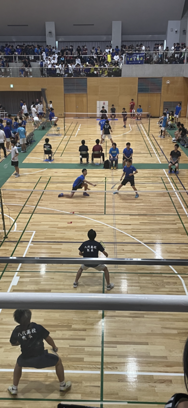 団体一回戦が行われ、0-5で八代高校に敗退しました。最後の大会で悔しい結果となりましたが、最後までシャトルを追い続ける姿や、全力でサポートに関わる姿を見ることができました。3年間、共に高め合い、切磋琢磨しながら過ごした日々を今後の学校生活の糧にしてほしいです。