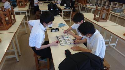 男子部員は、生物図鑑の写真をもとに「カイセンシオマネキ」のデッサンに熱中していました。