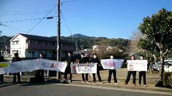 大矢野のキャモン前で、天草高校センター試験受験者を応援する看板や横断幕を発見しました。