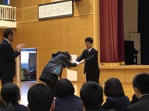3月22日(金)の終業式に先立ち、各部連絡と表彰式がありました。
