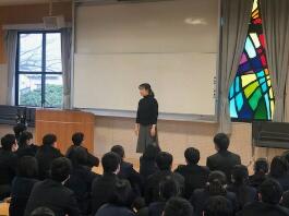 センター試験出発前日の学年集会と保護者からのサプライズ (3年生)