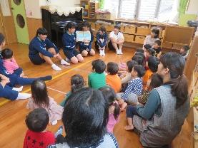 絵本の読み聞かせでは、絵本を子どもたちに見せながら、子どもたちのペースに合わせてゆっくりと話をする姿が見られました。