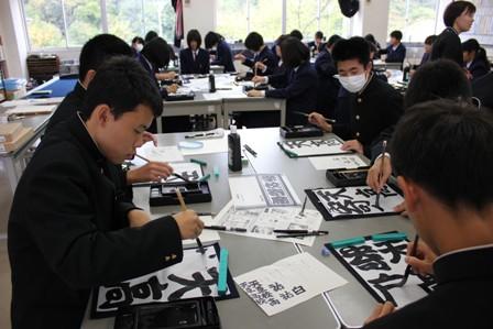 また、1年書道では、芸術鑑賞関連授業として、「寄席(よせ)文字」に挑戦していました。