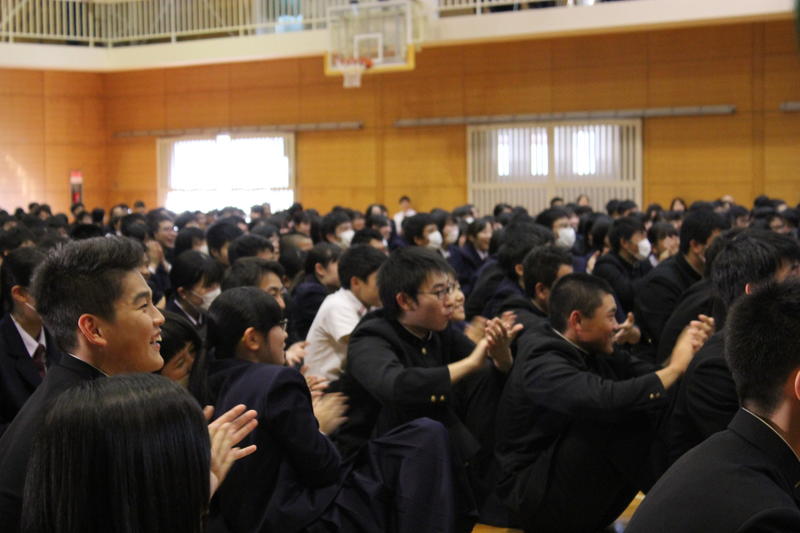 初めて鑑賞した生徒が多かったと思いますが、体育館は笑いと拍手で包まれました。