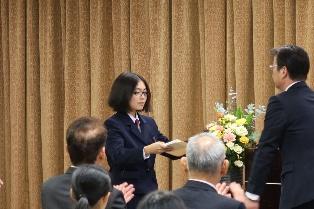 本校1年の林田くんと金子さんが登壇し、宣誓文を堂々と読み上げました。
