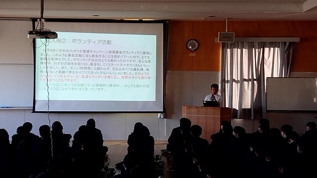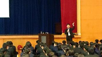 この後、教務部より家庭学習状況の報告、生徒指導部より携帯電話の危険性、進路指導部より夢を妥協しないことの大切さといった話がありました。