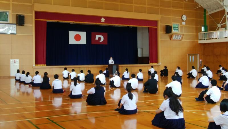 集会では校長先生から分散登校について、6月からの学校再開へ向けて激励のお言葉をいただきました。